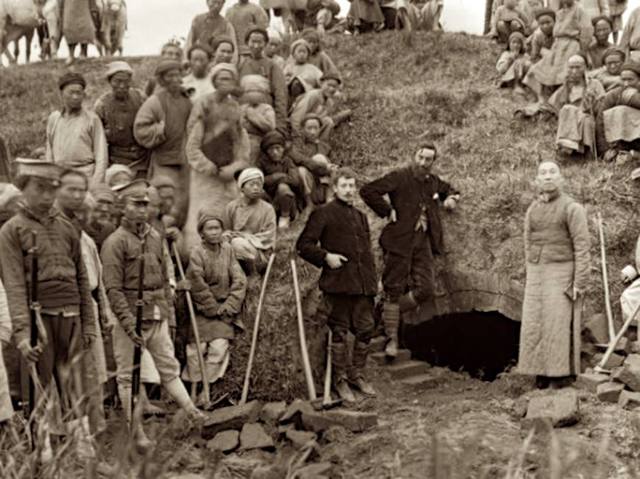 本组图片系1909年- 1918年法国赴中国考察队的照片档案。拍摄者为法国旅行家维克多·塞加伦(Victor Segalen,1878年-1919年)。著名的法国汉学家Henri Maspero(1882年-1945年)和Eduard Shavann(1865年-1918年)参与了此次考察。本图为四川盗墓者合影。图片来源:旧影阁的大风号。
