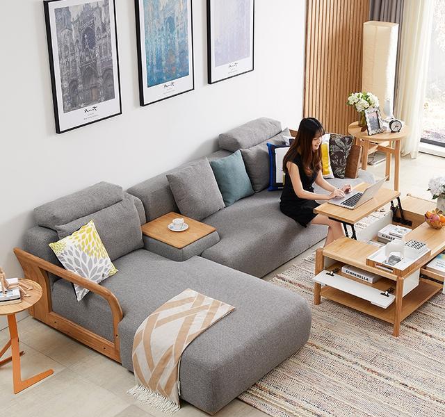 这套沙发组合用清新的颜色为居室增添美满的生活气息,简约大方。独特的储物柜设计不仅增添了实用性更是独具匠心,让家居多了一份个性。原木色调和冷暖色调的组合也为家居增添一份温暖和随意。