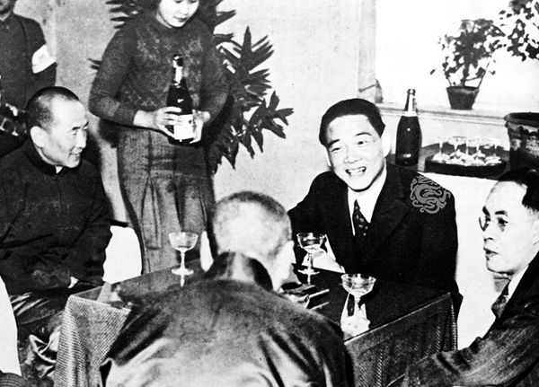 在“爱历史”收藏的1940年6月出版的侵华日军杂志《历史写真》325期中有这样一组汪精卫投敌叛国后到各地窜访,与日军和汉奸狼狈为奸,沆瀣一气,到处鼓吹亡国言乱的照片。 1940年3月,汪伪政权在日军的扶持下在南京成立后,汪精卫担任了代主席。随后开始了频繁的前往沦陷区各地。照片中为1940年4月9日,汪精卫在汉奸林柏生的陪同下,前往张家口与伪蒙古联合自治政府副主席于品卿会面。