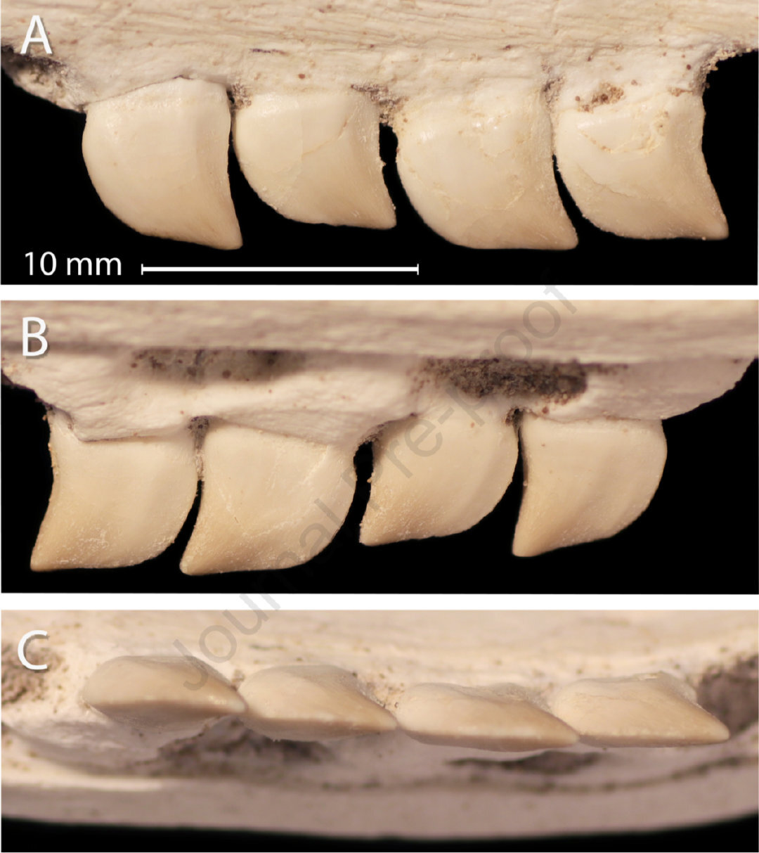 独特的牙齿是异齿沧龙得名的原因,也正因为其牙齿的独特性,古生物学家才能够仅凭不完整的颌骨和四枚牙齿就建立新属。那么,异齿沧龙的牙齿到底特别在哪里呢?