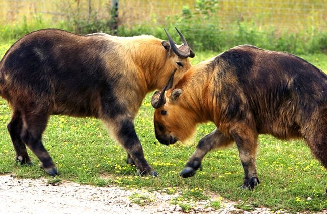 别看羚牛长相憨厚,看上去没有什么攻击性,其实非常危险。每当夏天到来,进入发情期的雄性羚牛会为了争夺交配权大打出手,争斗往往非常激烈,经常撞得头破血流。在竞争中失败的雄性羚牛会生气离开群体,成为四处流浪的“失恋者”。这些“情场失意”的雄性个体尤其威胁,会将怨气发到人类的头上,它们经常会离开山林,冲进人类居住地大开杀戒。