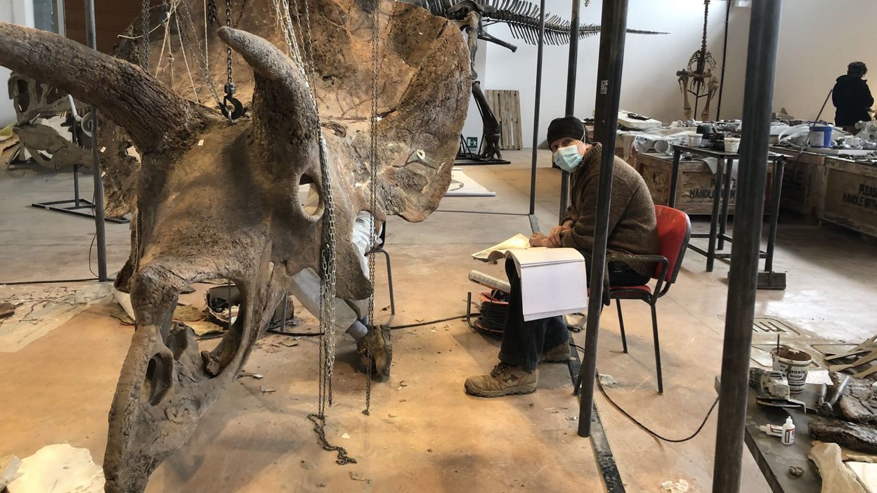 修复完整的“大约翰”并没有被送回老家美国,而是在2021年的9月突然出现在巴黎街头!,原来化石所有者要将“大约翰”拍卖。为了给这具化石造势,它在巴黎市中心的一个店铺内对外进行展示,仅仅是将它的化石组装起来就花了不少时间。
