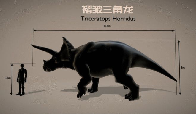三角龙的平均体长在6至7米之间,体重5至6吨,如此看来,“大约翰”是一头非常巨大的三角龙,事实也正是如此。在目前发现的较为完整的三角龙化石中,“大约翰”就是最大的!