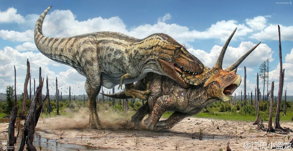 图注:捕杀三角龙的霸王龙,图片来自网络