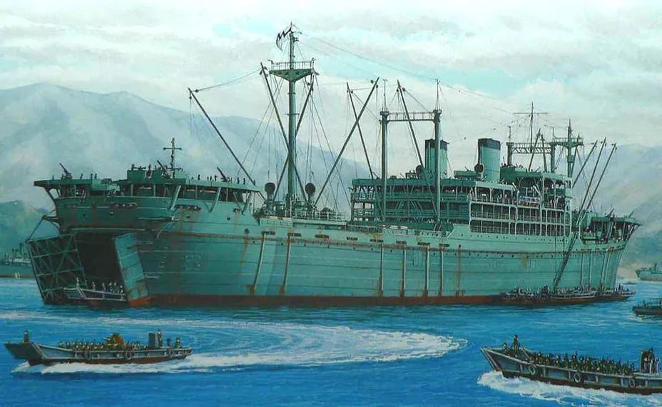 1934年,一艘特殊的登陆舰“神州丸”号完工下水——这是世界上第一艘专门建造的突击运输舰,被设计用来在没有港口设施的海岸快速卸载部队和装备。该舰标准排水量为9000吨,速度高达19节,载有29艘大发动艇和25艘小发动艇,借助这些驳船可以同时让2200名士兵上岸。