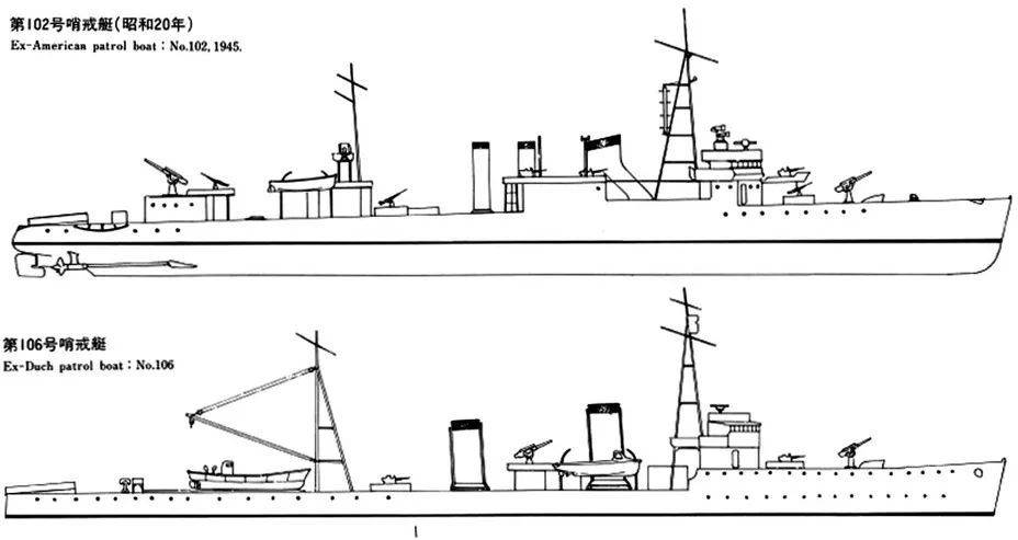 此外,几艘缴获自盟军的驱逐舰也按照类似的计划进行了改装,其中106号(前荷兰“邦克特”号)和102号(前美国“斯图尔特”号)也装备了大发动艇。