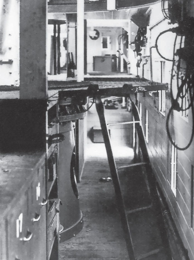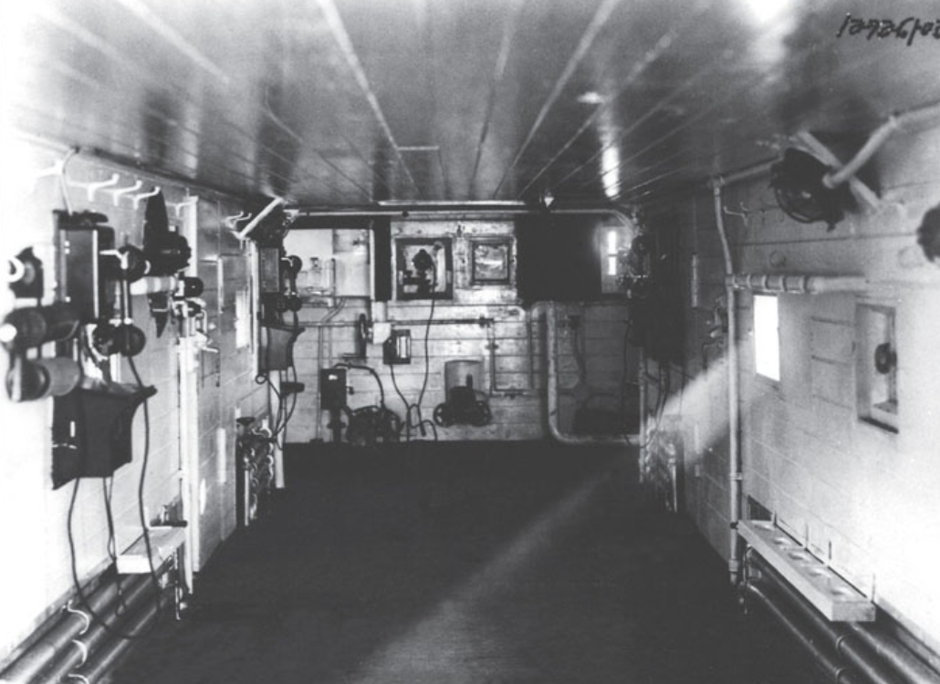 电源车:利用满铁60吨运煤车厢改造,内部分为发电机室、无线电室和蓄电池室,负责保证全列车的电力供应。电源车内配备列车远程无线电台2部,车顶设有通讯天线阵列,为避免电磁干扰,车顶采用非金属材料。