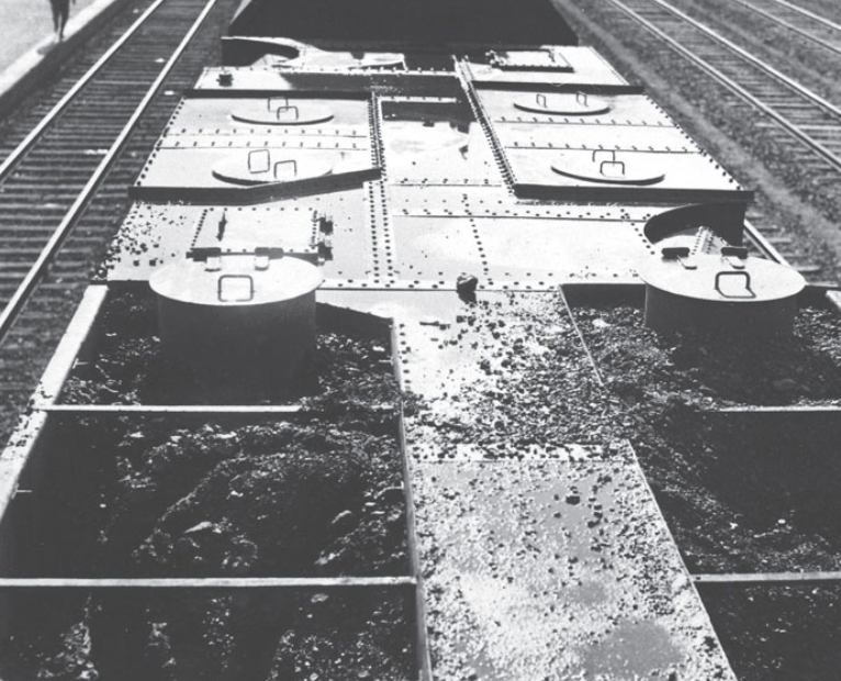 煤水车:车体为全新设计,中央设有通道,两侧设有六个煤水仓,并备有水泵,可从沿线的河流湖泊抽水,车内储备煤炭可供行驶300千米,锅炉水可供行驶150千米,在不加煤水的情况下,列车最大行程为150千米,在200千米测试运行时每千米消耗煤炭25千克,淡水185千克。煤水车两侧各有一座伸缩式机枪塔,作战时伸出车外,水平射界180度,可高平两用,机枪及备弹与前车相同。