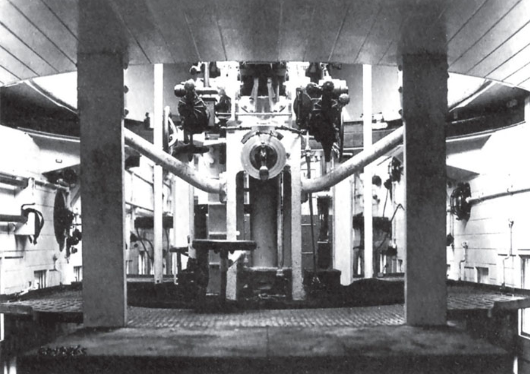 见30厘米探照灯和左右2座机枪塔。