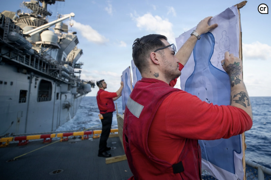 3月11日,“的黎波里”号两栖攻击舰还在菲律宾海活动,并组织舰员进行了打靶练习。